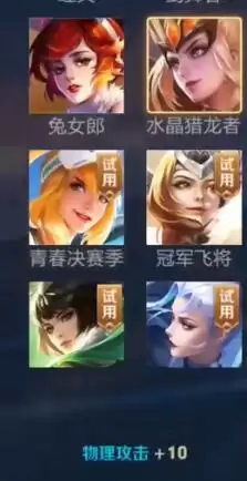 2、有些游戏的皮肤会自带属性的加成,10攻击力、10法强、120点血,但是曙光英雄皮肤没有加成。