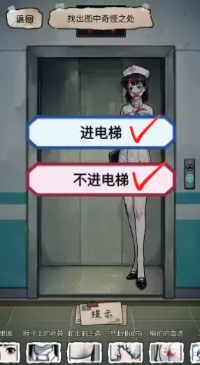 2、然后在找到所有的地方后就是可以选择进入电梯,这里选择不进电梯的话是会立马死。