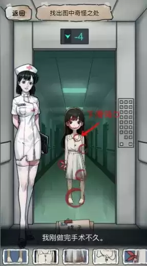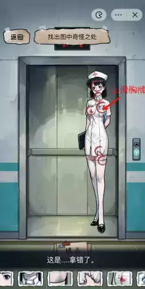 3、之后就是需要玩家到达上方中,在上面的位置中是可以找到这些奇怪之处,最后是点击下滑领口漏出缝合的伤口。