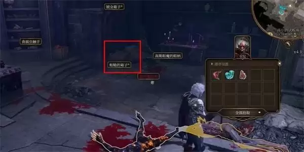 3、我们探索到这个位置之后,就可以看到粗糙的箱子,前行到这个箱子的位置。
