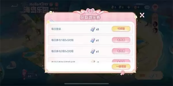 5、我们每日登录还可以领取到3张游乐券继续前行步数,来建造乐园建筑,同时每日邀请观光团来乐园游览,还可获得额外乐园币,加速奖励获取速度。