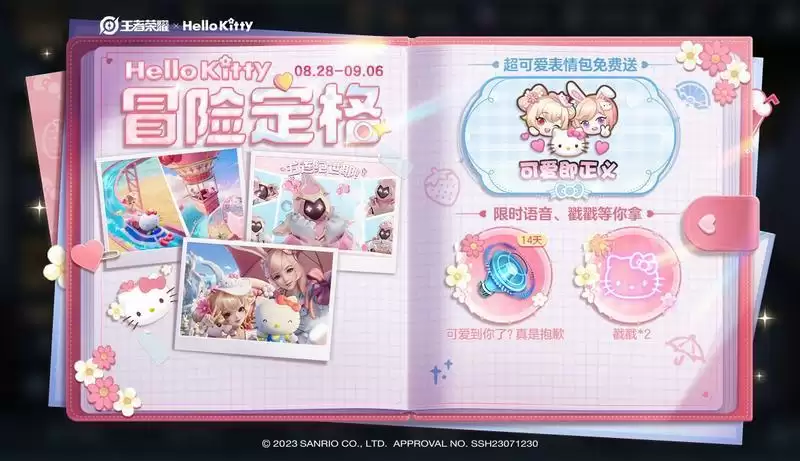 收集相片可获得超可爱联动资源:限时语音:可爱到你了?真是抱歉(14天)、个性戳戳-Hello Kitty*2、静态表情:可爱即正义。