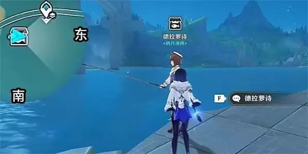 2、我们根据标记好的指引,前往到钓鱼地点,就可以看到德拉萝诗的身影。