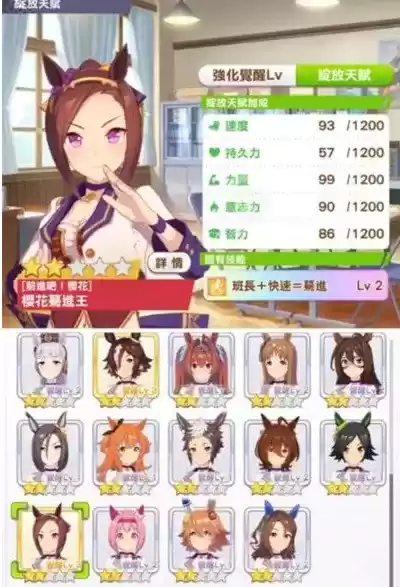 樱花蓦进王是短距离比赛中使用率最高的赛马娘,有着20%的速度成长率,培育提升速度非常轻松。樱花蓦进王是领头和前列都可以跑,在速度属性比较快的情况下,选择领头跑是很强劲的。