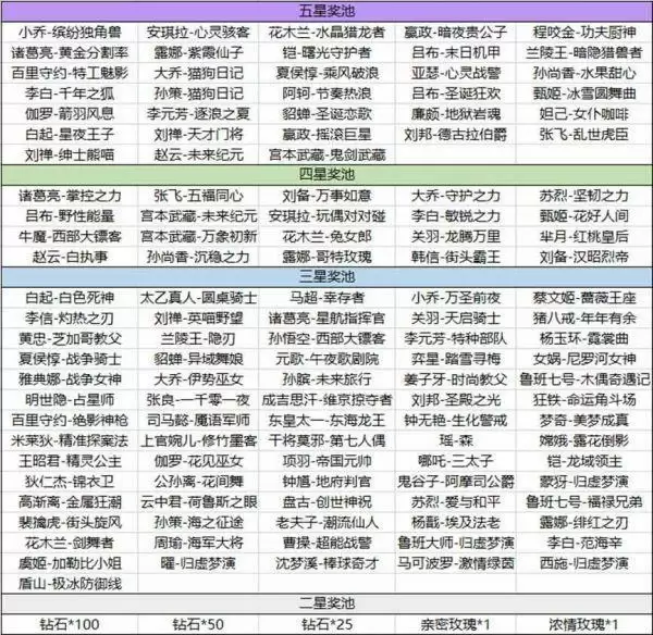 皮肤池保底奖励:当刷新次数达到20次时,下次刷新必出四星奖池及以上奖励;当刷新次数达到80次时,下次刷新必出五星奖池奖励(刷新时不会刷新到已经拥有的皮肤)。