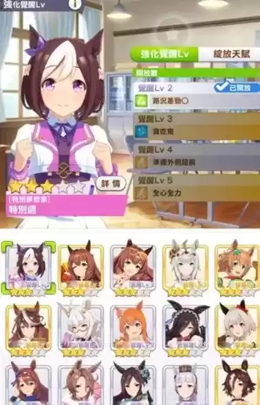 特别周本身自带的技能就足以应对中长距离培育,所以不提升觉醒Lv也可以顺利跑完URA。如果想增加胜率或者想跑队伍竞技场的话,可以提升到觉醒Lv3拿贪吃鬼。特别周的速度SSR支援卡片不一定会给你贪吃鬼,但是特别周自己肯定有贪吃鬼。