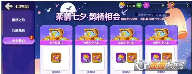 助力商城中增加新道具“七巧宝盒”,在仓库中开启七巧宝盒有概率获得七夕巧酥