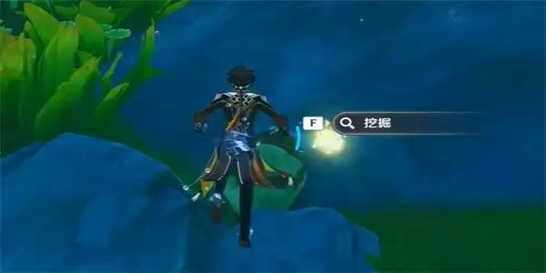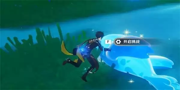 4、接着我们穿过水环,到此次位置进行挖掘之后,就可以出现机关,普通攻击机关之后就可以完成第二轮的挑战。