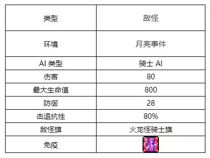 火龙怪骑士是火龙战士和火龙怪的组合。它们在月亮事件期间的日耀柱区域内生成。