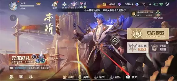 2、进入游戏在下方界面找到“社交”功能选定点击进入,点击其中的羁绊可以看见亲密关系。