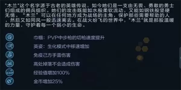 问题:新出的角色木兰她的角色技能当中没有哪个技能?