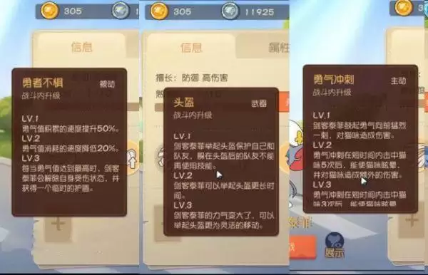 2、技能:勇气冲刺实测之后这个技能用处不大,技能点一即可,可以配合头盔一起使用。勇者不惧,这个被动技能是必须要主点的技能,它可以快速增加勇气值的积累,并且降低消耗。头盔技能,这个救人还是非常强势的,被动升到二级之后,主要就是点头盔技能。