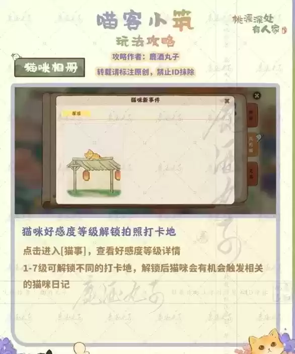猫咪好感度等级解锁拍照打卡地,有机会触发相关的猫咪日记