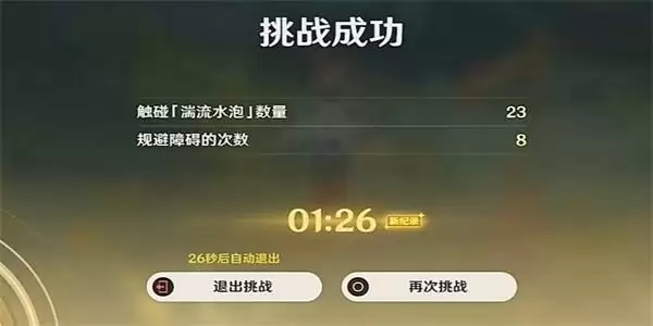 4、结束之后,我们就可以看到挑战成功以及挑战过程当中的详细情况了。