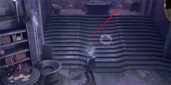 2、接着我们就按照标记好的路线前行,上到楼梯上面,就可以看到宝箱的位置了。