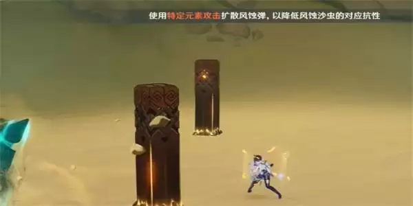 1、首先我们需要前往到标记好的位置,击打两个破沙虫boss风蚀弹之后,就可以解锁该成就了。