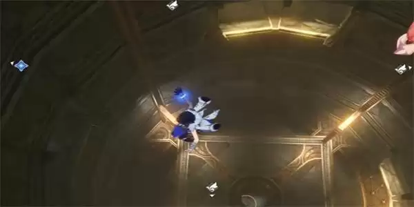 3、我们继续前行到这个大门的位置,在此位置需要触发机关之后,就可以继续前行了。
