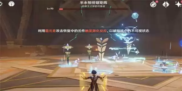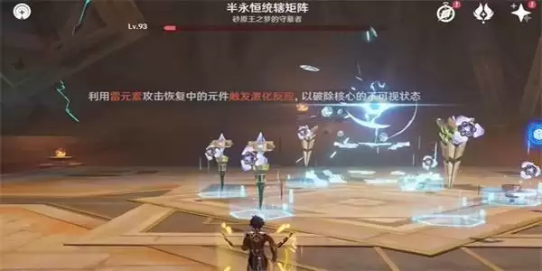 2、接着我们就前往到到目的地之后,就开始击败boss,利用雷元素攻击恢复中的元件触发激化反应,以破除核心的不可视状态 。