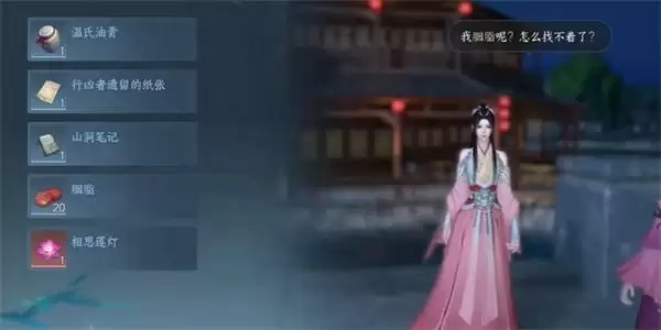 3、然后我们就得NPC的胭脂丢了,我们就把获取到的胭脂出示给NPC,继续进行对话即可。