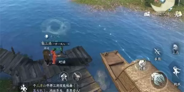 1、我们需要前往到桃溪村【992,1255】的位置,在此进行钓鱼之后,就可以解锁该传闻。