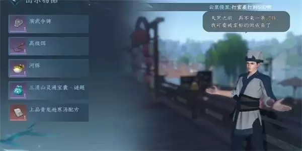 3、我们根据任务指引前往到目的地之后,就可以与NPC进行对话,把与鱼出示给他即可。