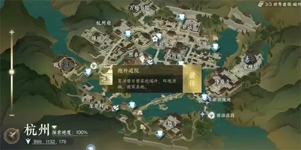 1、首先我们需要前往到杭州【998,1132】的位置,在此位置捡起地上的胭脂,就可以解锁该传闻。