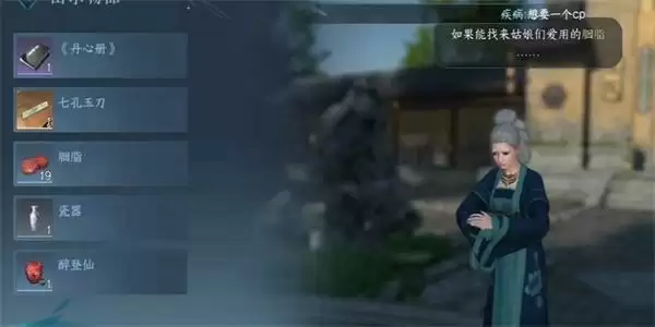 3、我们到达目的地之后,就在此与NPC进行的对话,在对话中把胭脂出示给她即可。