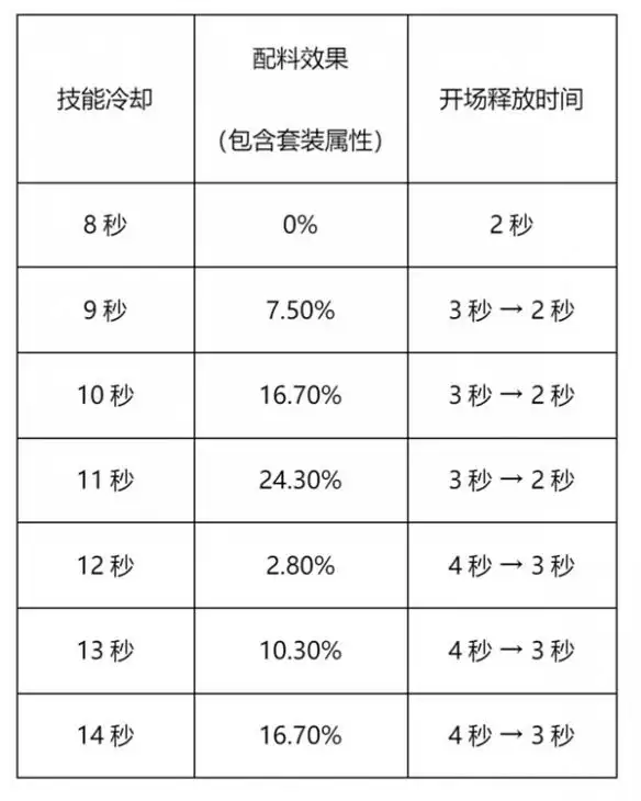 3、当自身冷却数值达到21.1%时,开场技能会变成4秒。