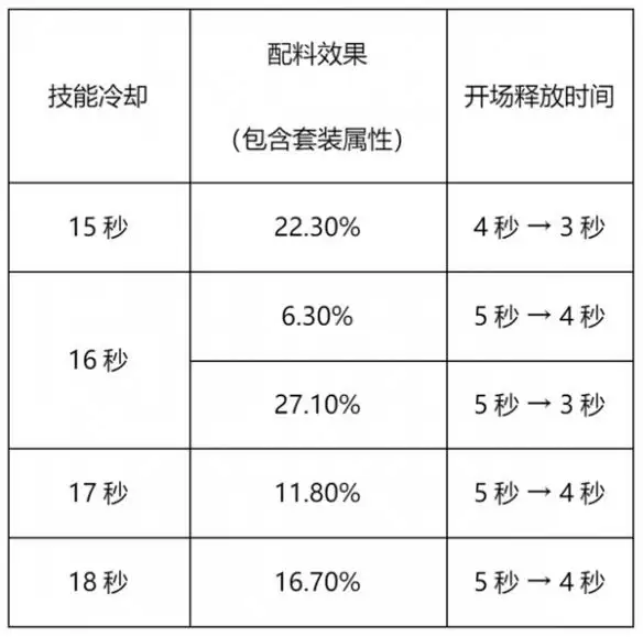 2、当自身冷却数值达到3.6%时,开场技能时间会变成5秒。