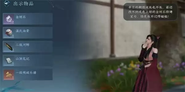 3、接着我们就把NPC需要的道具出示给她之后,进行对话就可以了。