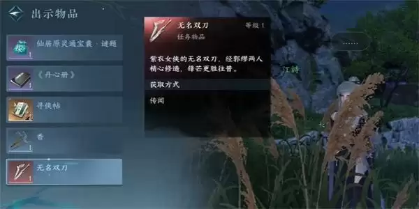 5、完成对话者之后,我们就可以获得到无名双刀,前往到仙原居的位置,把无名双刀出示给NPC。