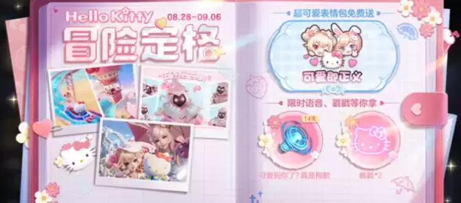 1、8月28日-9月6日活动期间,玩家完成任务可获得冒险次数,用于“一起冒险”并解锁五张和Hello Kitty的冒险相片,获取相片收集奖励。