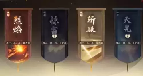 2、四相寻宝玩法当中一共有4中不同属性的关卡可以挑战,分别是:烈焰、惊雷、斩铁、天光