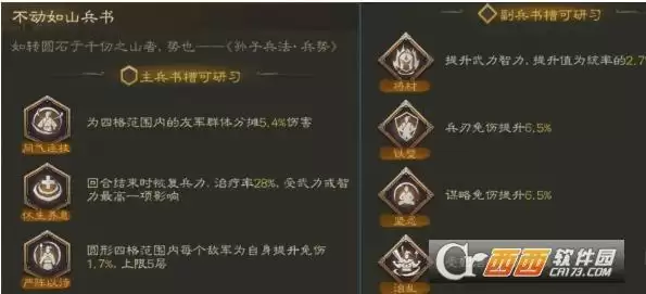 将兵刃防守做到极致的组合方式,反之如果更倾向于谋略防守方面,可以将铁壁替换成坚忍。
