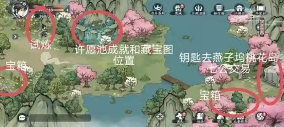 1、在图片中标记的花丛位置具有宝箱。