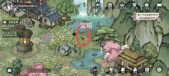 3、在河边的花丛中有一个宝箱。