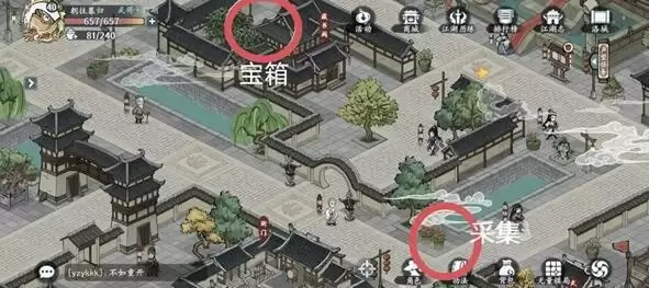 8、宝箱在上面,采集在左下。