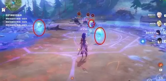 4、到达之后将裂隙中的两只兽境猎犬击败并开启挑战,玩家需保护3个结晶体,然后将出现的兽境猎犬击败即可完成挑战。