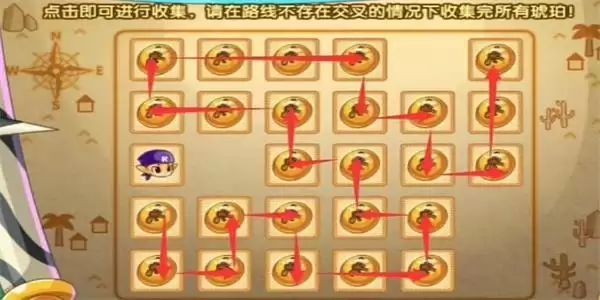 活动玩法:点击即可进行收集。博在路线不存在交叉的情况下收集完所有琥珀。