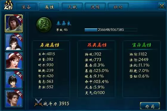 潜力:潜力影响力智耐敏意各项基本属性,提升潜力可提升人物各项基本属性,提升的幅度和级别等其他因素无关,只和潜力数值有关。