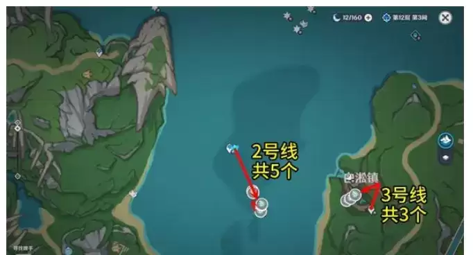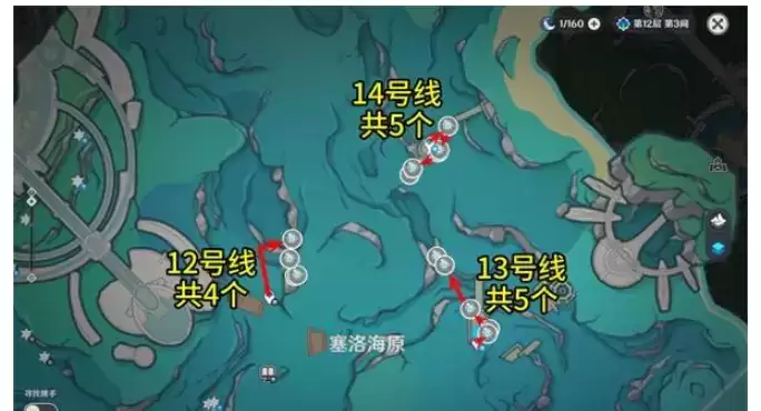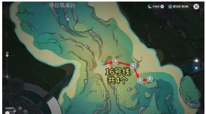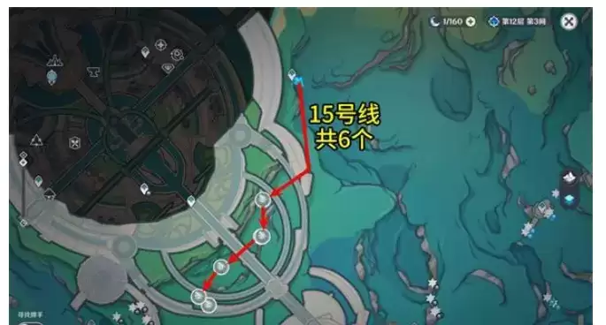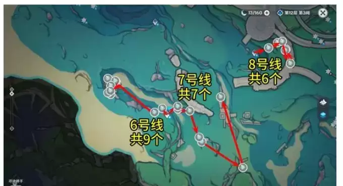 1.原神苍晶螺位置采集路线如下:1~17号线,共104个。