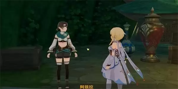 3、我们寻找到阿兹拉(女佣兵)进行对话,出示糖吃她(给药后再次对话给糖)。