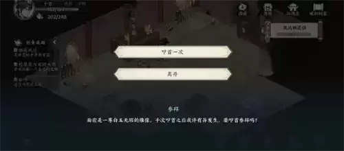 1、我们首先来到牛家村的破旧祠堂,出现选项,我们点击叩首一次,重复磕头多次。