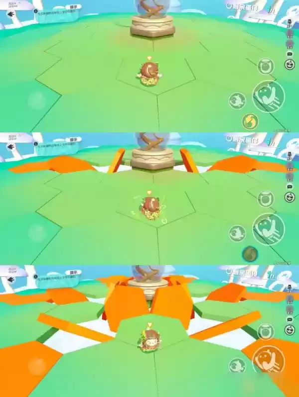 整个地图是一个大的六边形平台,由很多小六边形组成。当六边形变红,就代表即将上下翻转了,如果再站在上面就会被翻下去淘汰了,要赶快去到别的地板。