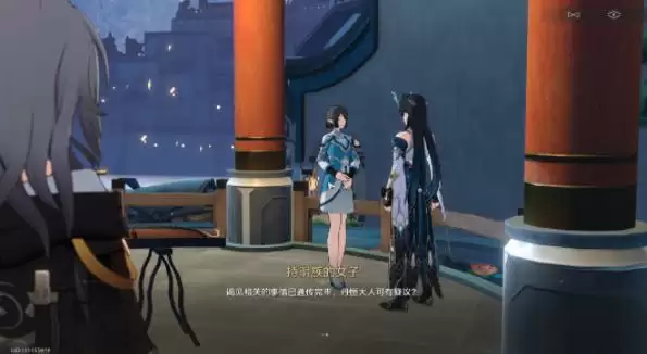 2、到长乐天凉亭处找到丹恒,能看到丹恒在和一个持明族女人对话,她是白露的侍女浣溪。