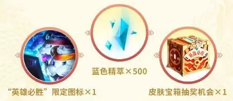 购买两种套餐都可以获得,里面包含【英雄必胜】限定图标、500蓝色精粹以及一次皮肤宝箱抽奖的机会。