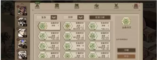 7.生存符文有冥想(生命+魔防)、生命(生命)、支配(生命+物防)、沉思(生命+魔防)、反噬(生命+格挡)、抵抗(生命+魔免)、萌芽(生命+回血值)、仁慈(生命+治疗量)。
