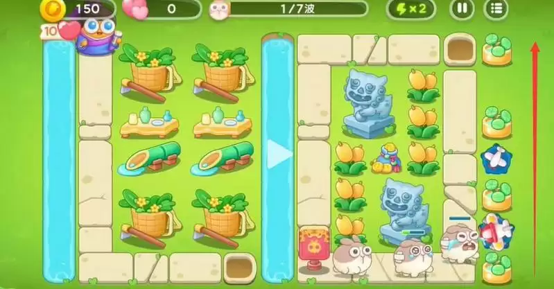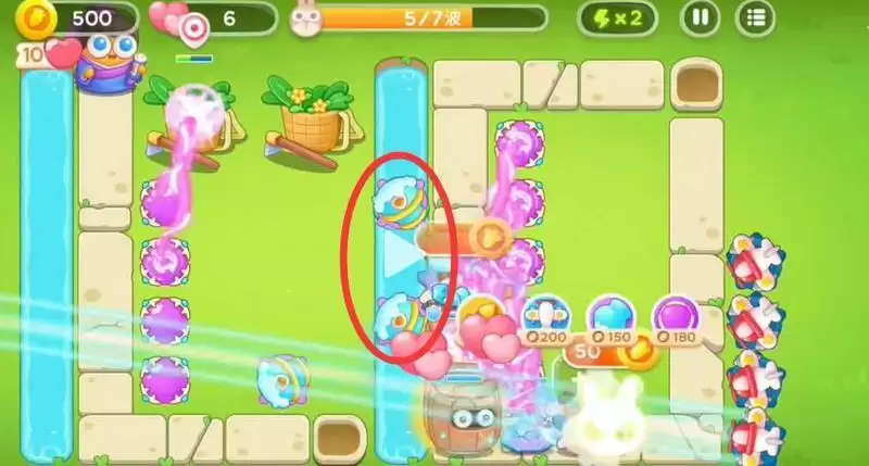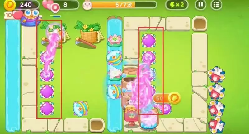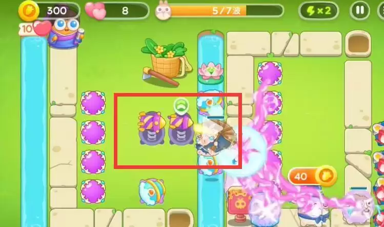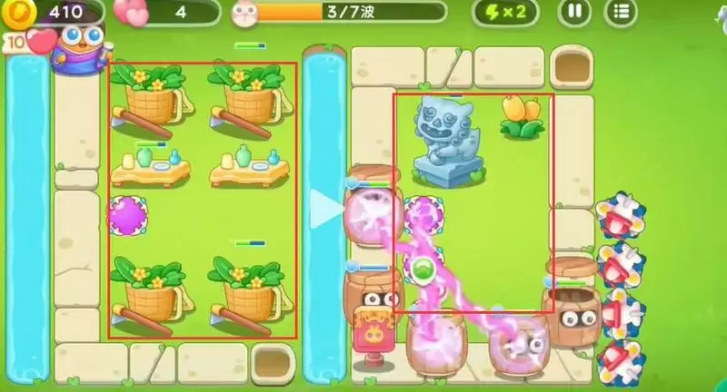 6、中间的荷叶上放上雪球塔将附近路过的兔子全部减速造成更多的伤害。