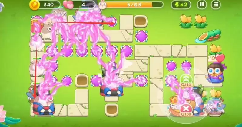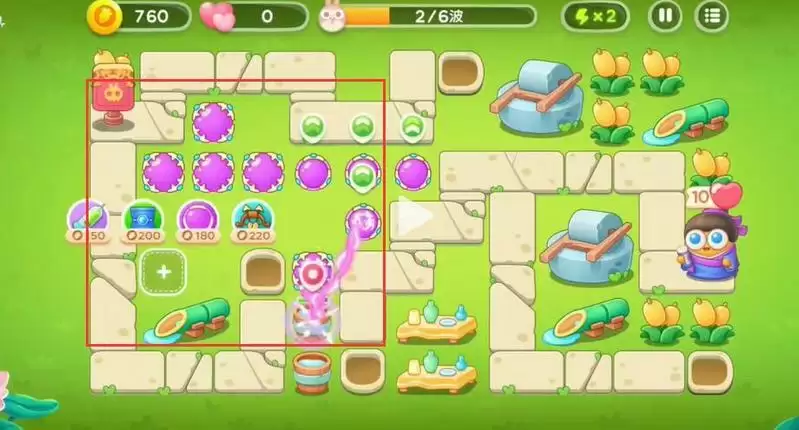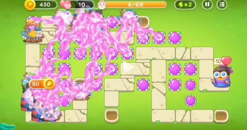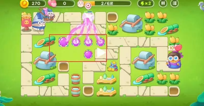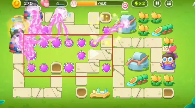 2、在放置炮塔时优先将左边的空位全部放上魔法球用来清理兔子。