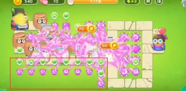 4、打不动的时候就可以升级炮塔了,优先清理道具。